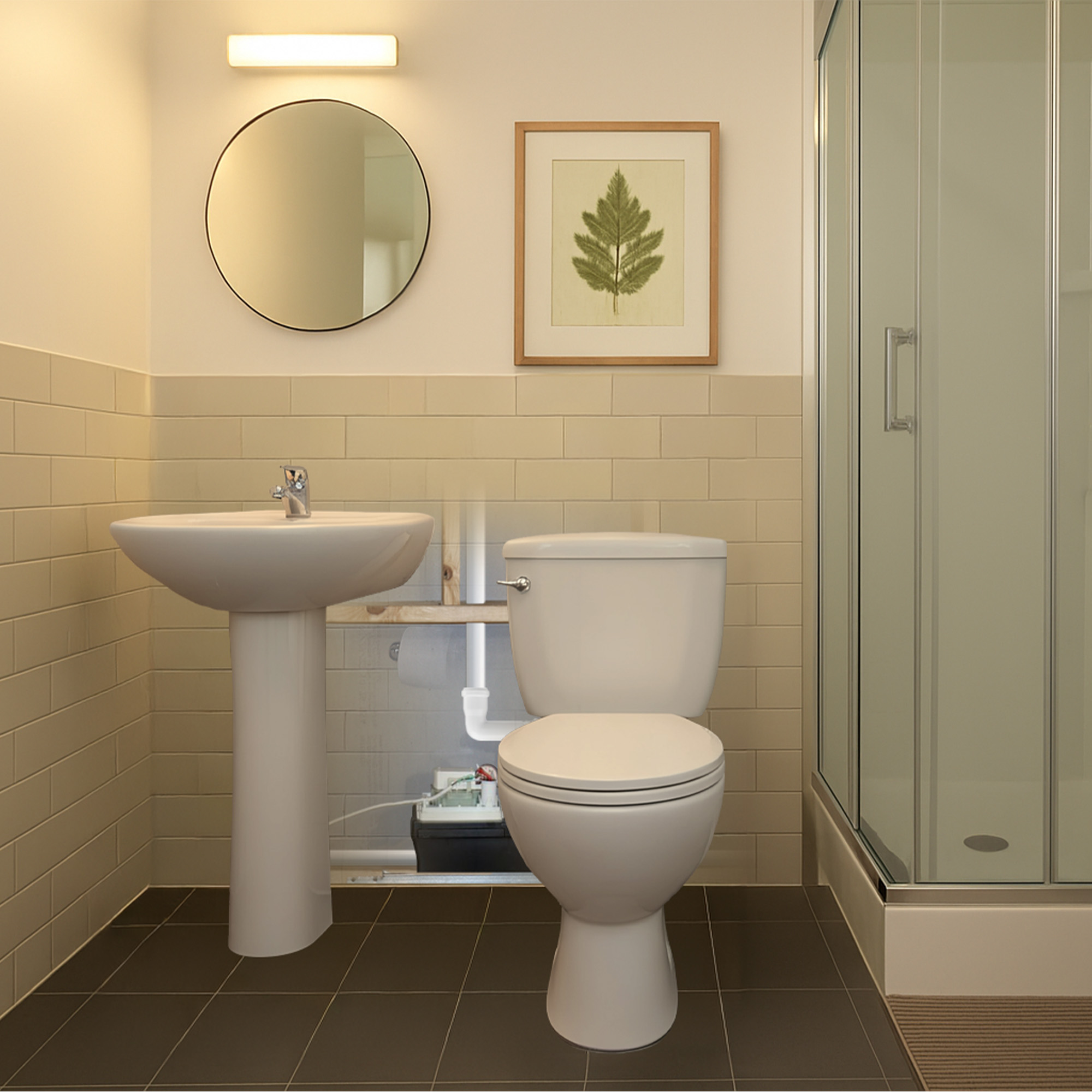 This bathroom system is an ideal DIY project for homeowners looking to install a basement bathroom or add facilities to other areas, without breaking concrete or breaking the bank. This powerful unit features a double set of blades with internal “impeller blades,” capable of pulverizing and clearing accidental flushes of common feminine products, a frequent cause of blockages that won’t be an issue with our unique design.